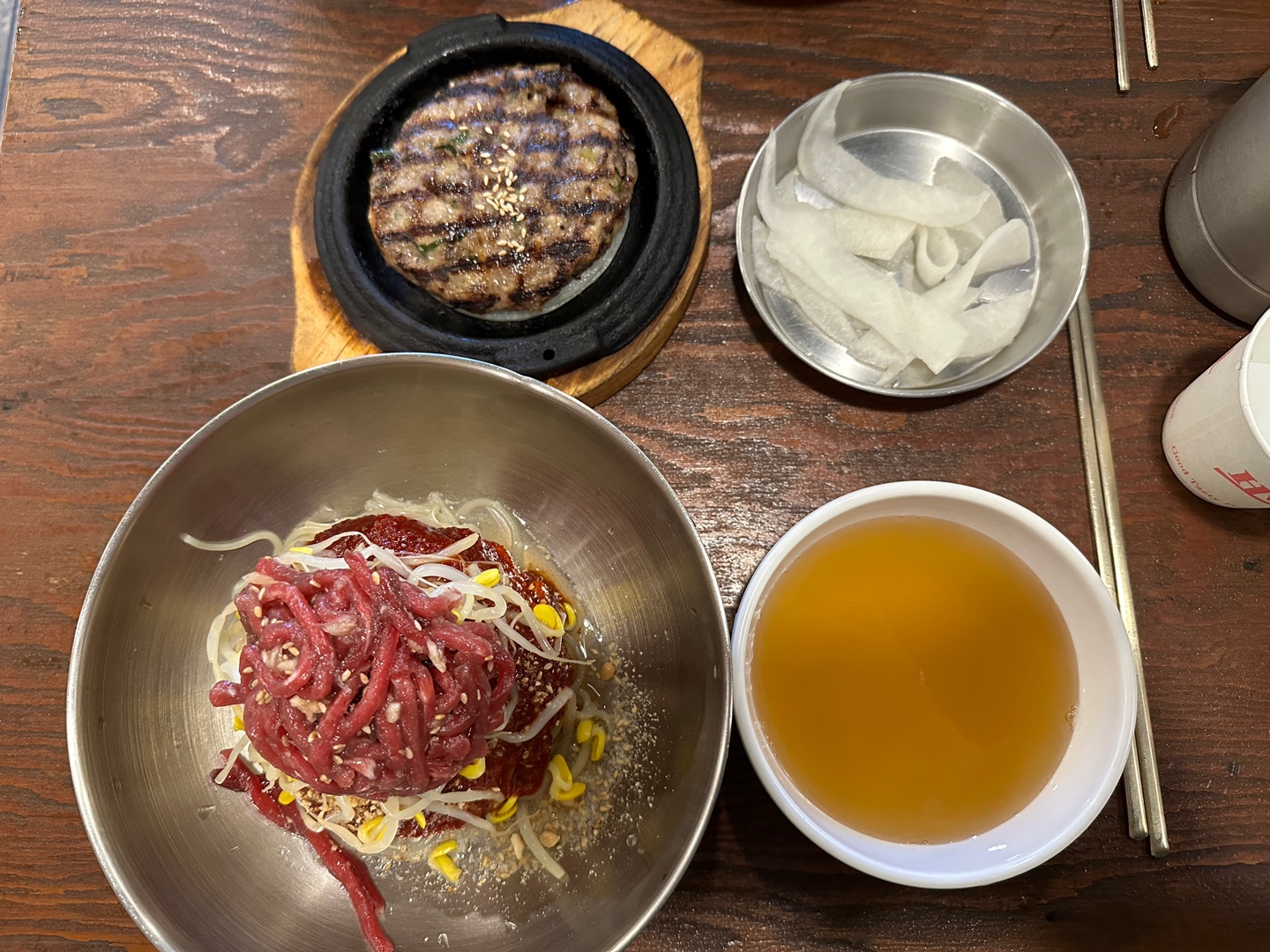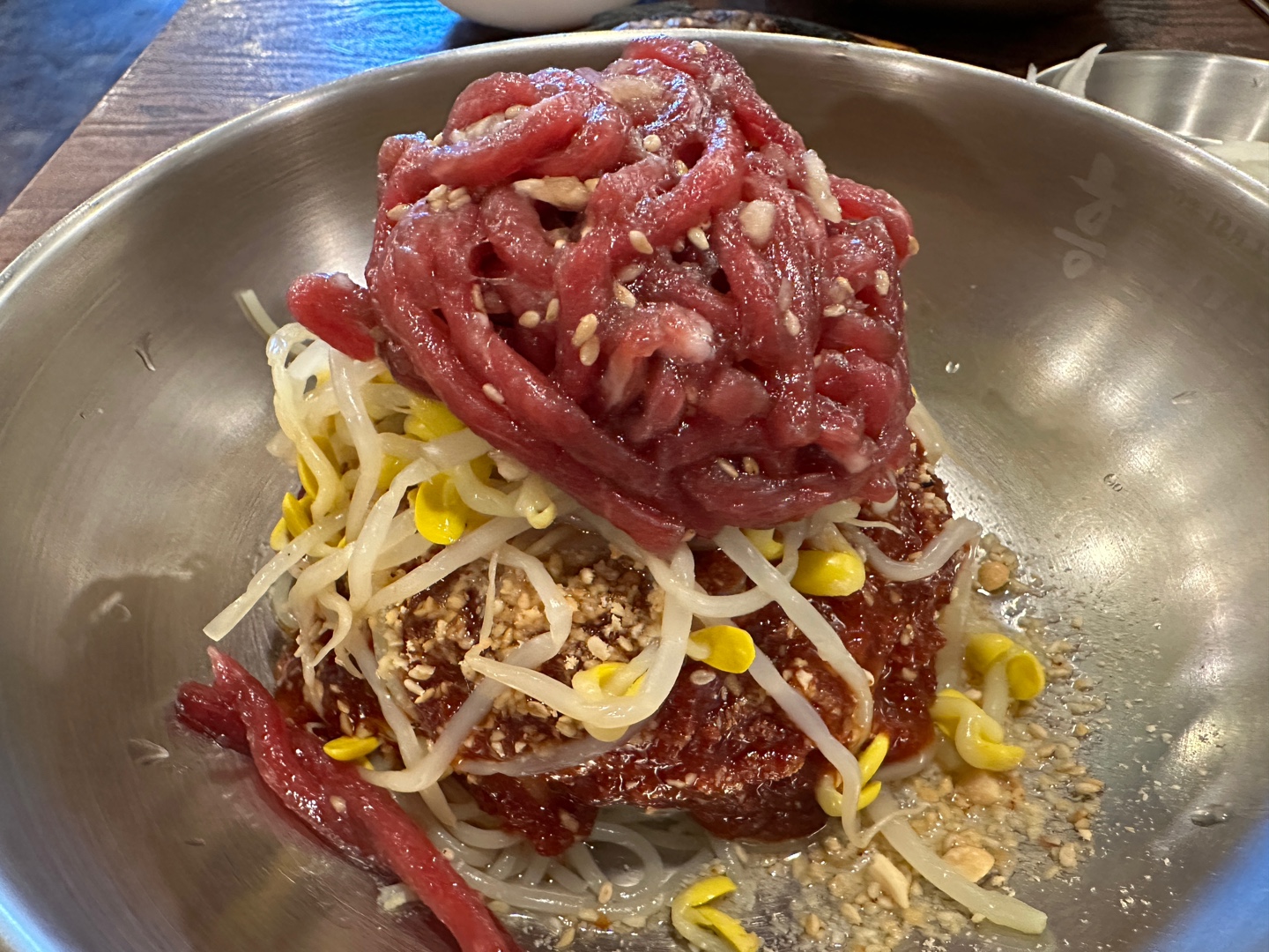 오!! 저는 비빔밀면도 먹고 싶었고 육회비빔밥의 육회도 먹고 싶었는데,