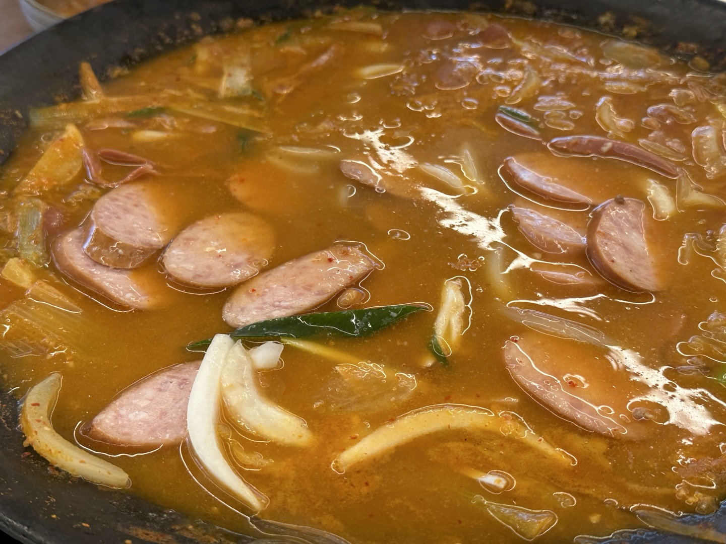 킬바사 소시지에서 나오는 육즙이 부대찌개의 맛을 더욱 풍성하게 만들어 주더라고요.